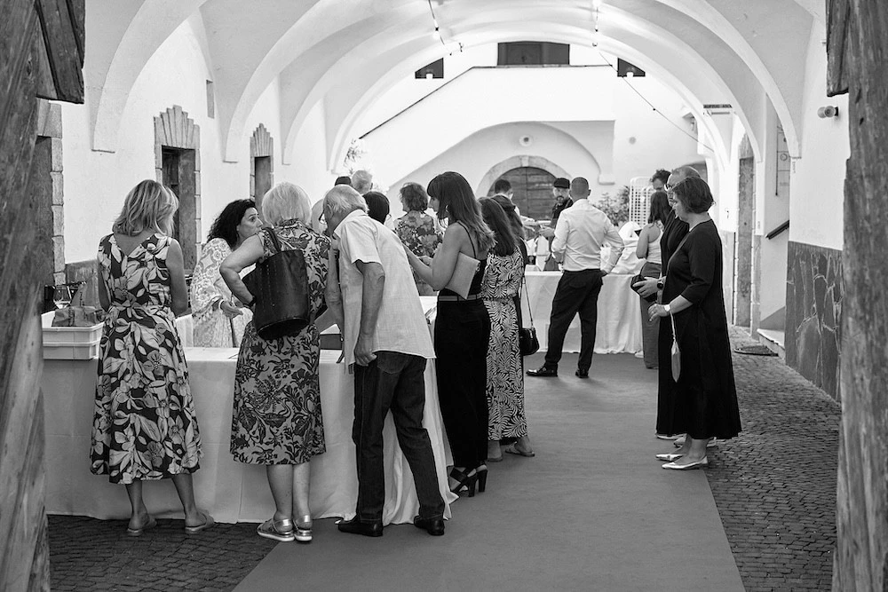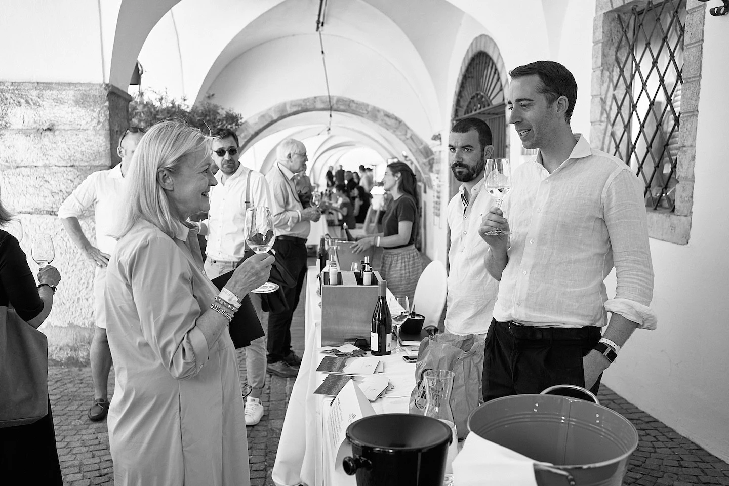 Bei unserem jährlichen Wein & Lauben Event verwandelt sich am Abend die Straße in Neumarkt in einen festlichen Ort, wenn Besucher zu einem gemeinsamen Dinner unter freiem Himmel zusammenkommen.